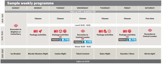 Program pro volný čas je kombinací poznávacích, kulturních a sportovních aktivit. Zároveň se studenti podívají po okolí a navštíví spoustu zajímavých míst, neodmyslitelně patřících k Londýnu. Součástí pobytu jsou půldenní a celodenní exkurze po okolí.
